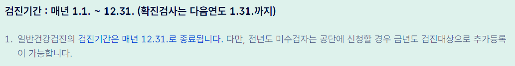 국가건강검진은 당해년도 12월 31일까지지만 미수검자의 경우 공단에 요청 시 검진대상으로 추가등록도 가능은합니다.