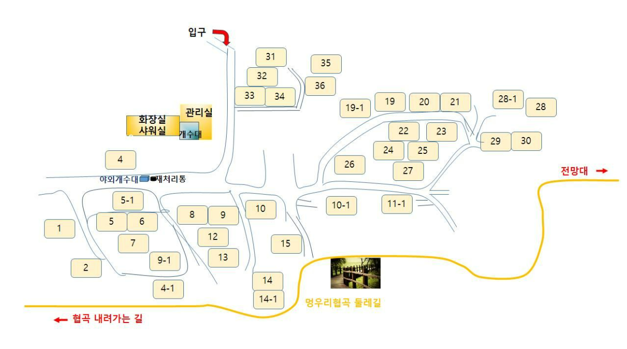 멍우리협곡캠핑장에서 걸어서 1시간 정도 거리에 위치해 있습니다.