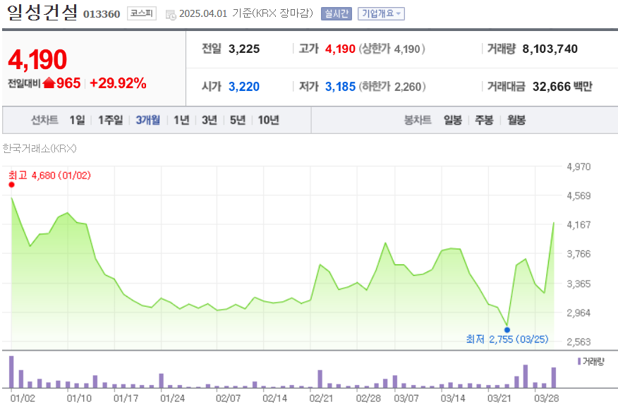 2) 2025년 4월1일 차트 (출처: 네이버주식)