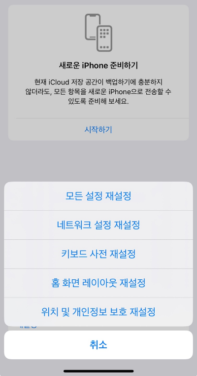 이 방법은 위치·권한 관련 내부 설정만 초기화되며, 데이터나 앱이 삭제되지는 않습니다.