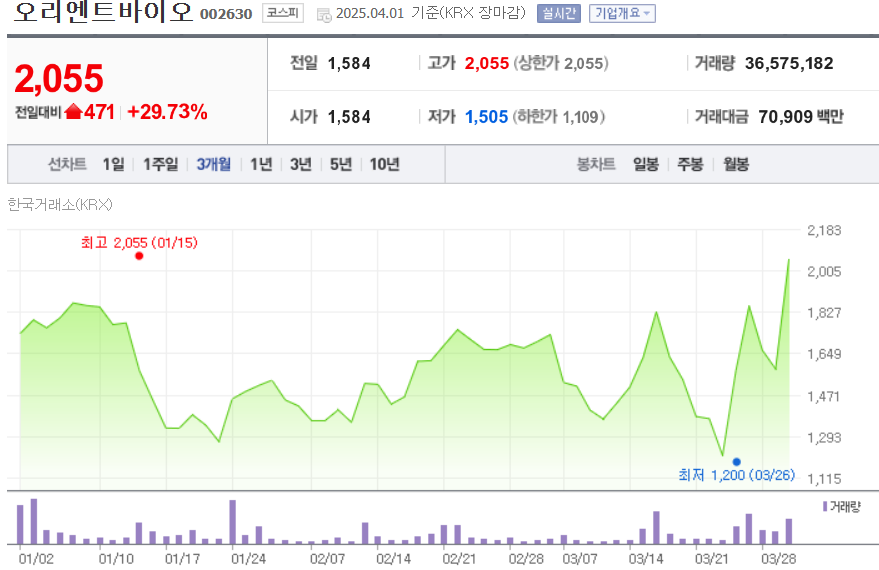 2025년 4월 1일 상한가 주식 종목
