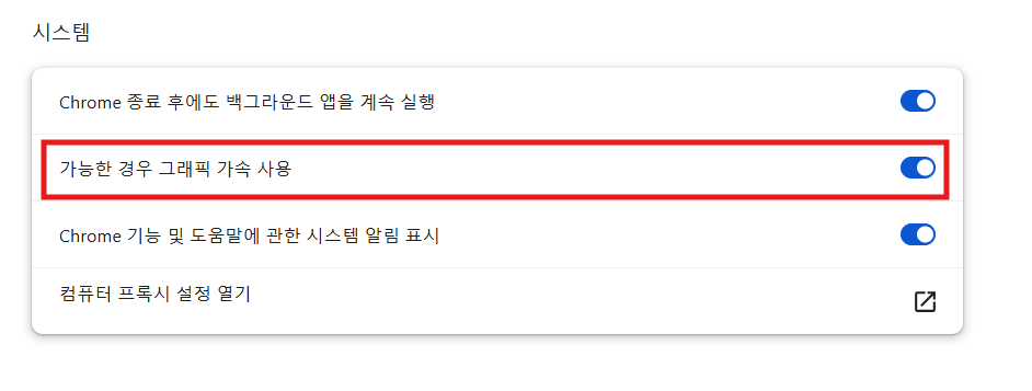 - 크롬 주소창에 chrome://settings/system 입력