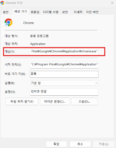 - 바탕화면 크롬 아이콘 우클릭